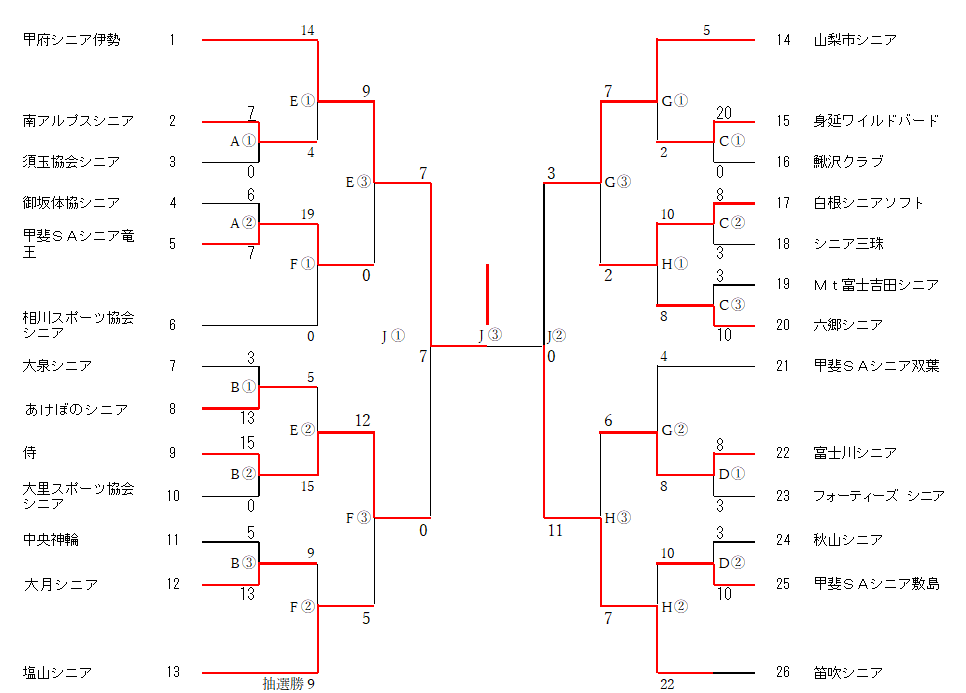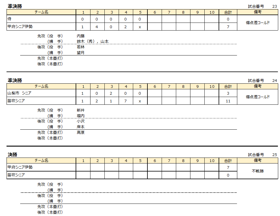 優勝 甲府シニア伊勢 準優勝 笛吹シニア 第3位 侍・ 山梨市シニア