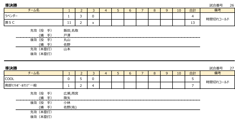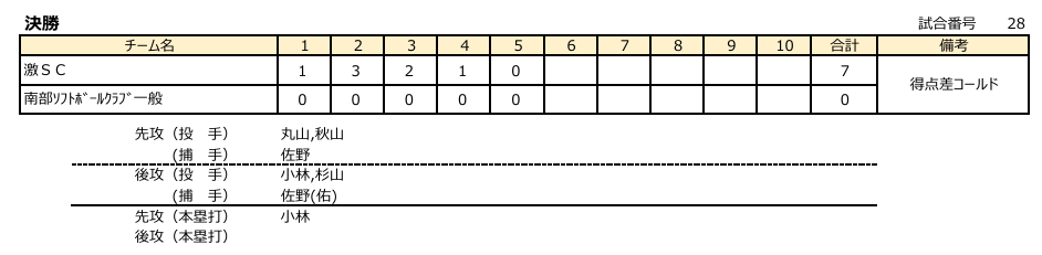 優勝 激SC 準優勝 南部ソフトボールクラブ一般 第3位 ラベンダー ・ COOL